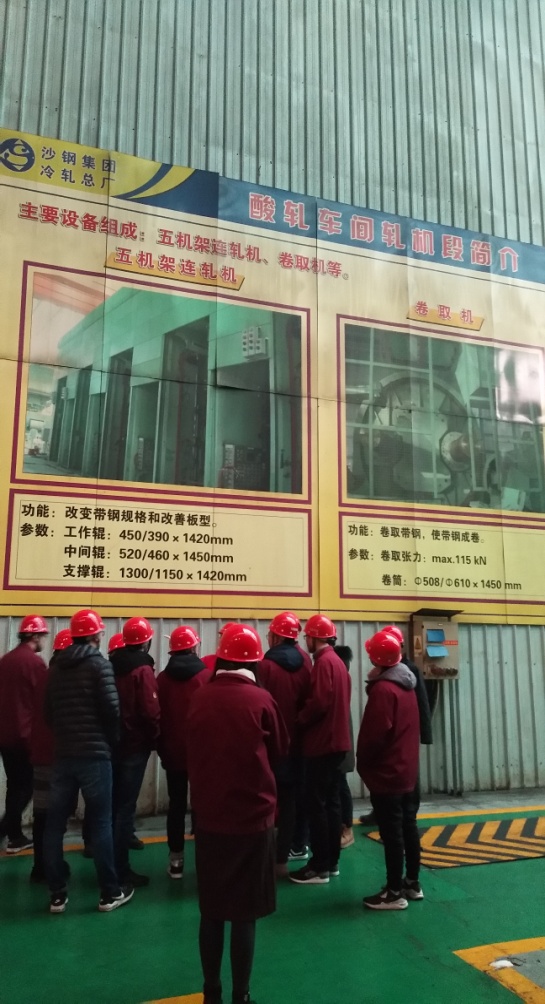 為促進(jìn)員工對(duì)沙鋼產(chǎn)品知識(shí)的了解,提升業(yè)務(wù)能力, 1月12日,沙鋼國(guó)貿(mào)組織 冷軋廠(chǎng)參觀(guān)培訓(xùn)活動(dòng) , 現(xiàn)場(chǎng)學(xué)習(xí)冷軋產(chǎn)品生產(chǎn)中各環(huán)節(jié)的相關(guān)知識(shí)。